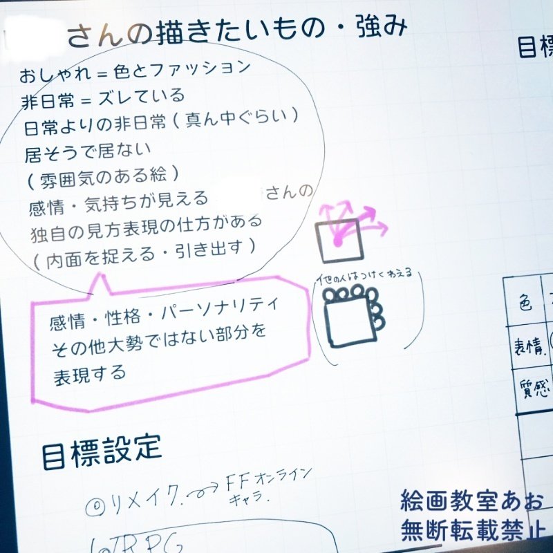 生徒さんの描きたいもの。さらには生徒さん独自の強みも見えてきました!