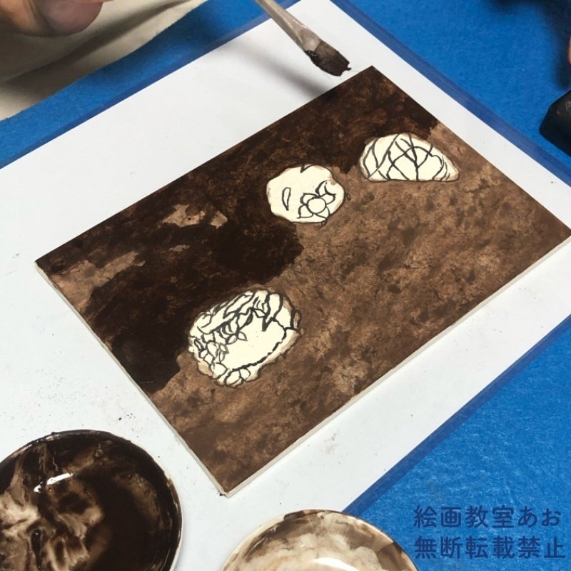 今日は水貼りと、下絵を考えていきました。