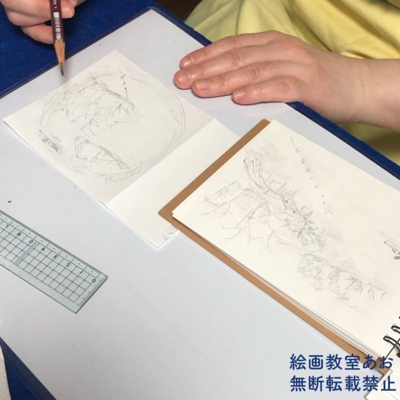 スケッチ会で描いたスケッチを元に新作を描くことにした生徒さん。