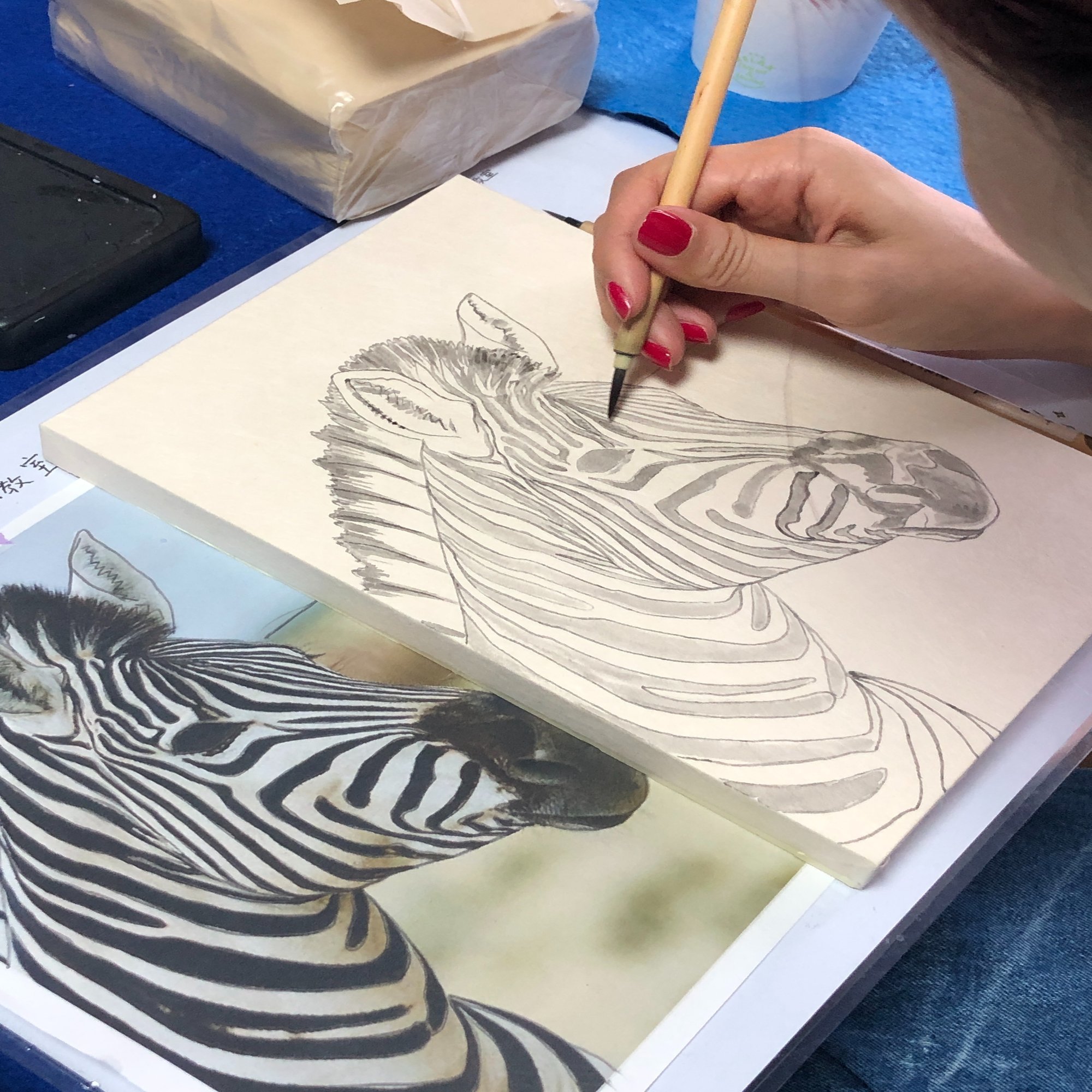 しまうまを描いている生徒さん。