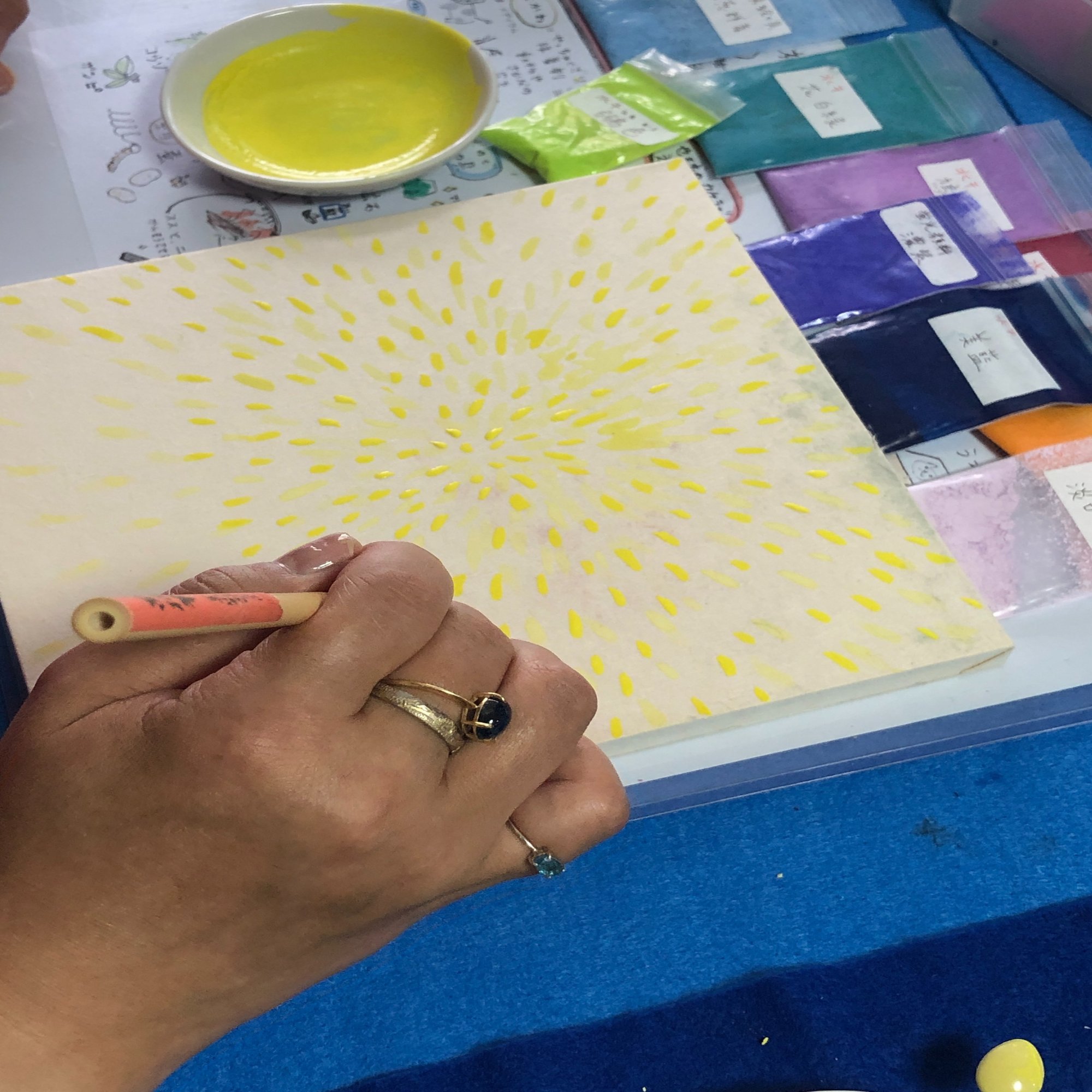 思いのままに日本画を楽しんでいる生徒さん。