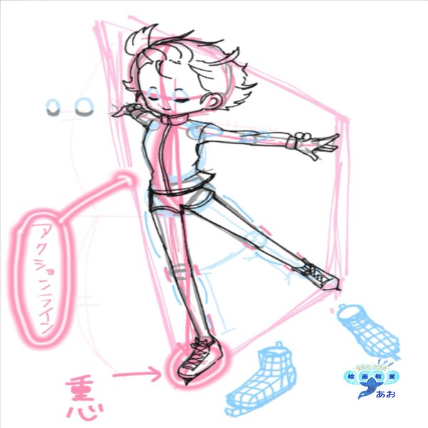 ポーズを書くときは、体の正中線と、足の位置(重心)を意識すると書きやすくなると思います。